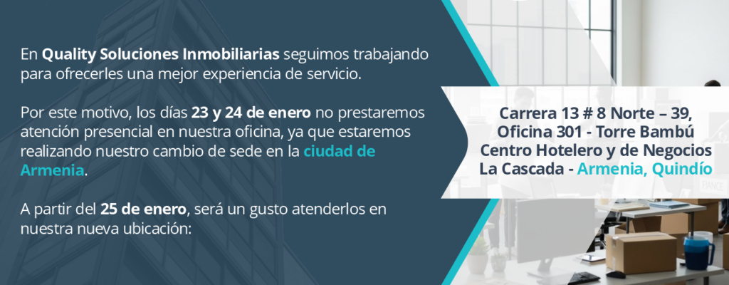 - Asegurando la Confianza y el Futuro de tus Inversiones Inmobiliarias en 2025En Quality Soluciones Inmobiliarias, comenzamos el año con el firme compromiso de fortalecer la confianza de nuestros clientes inversionistas y garantizar un servicio de excelencia. Nuestra gerente, Susan Arias de la Torre, lideró este compromiso… Lee más: <strong>Asegurando la Confianza y el Futuro de tus Inversiones Inmobiliarias en 2025</strong>